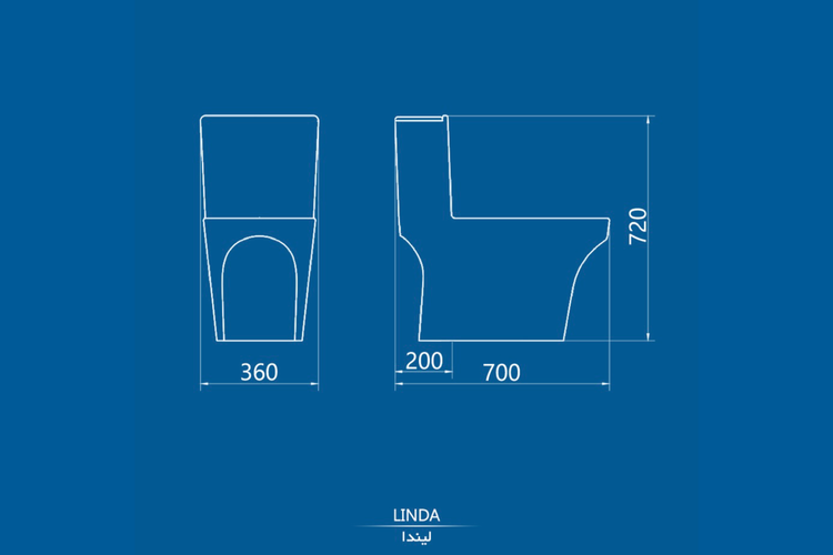 توالت فرنگی منوبلاک لیندا، طراحی زیبا با نشیمن بزرگ و ارتفاع مناسب بهداشتی دارای لعاب در تمام مسیر سیفون.
